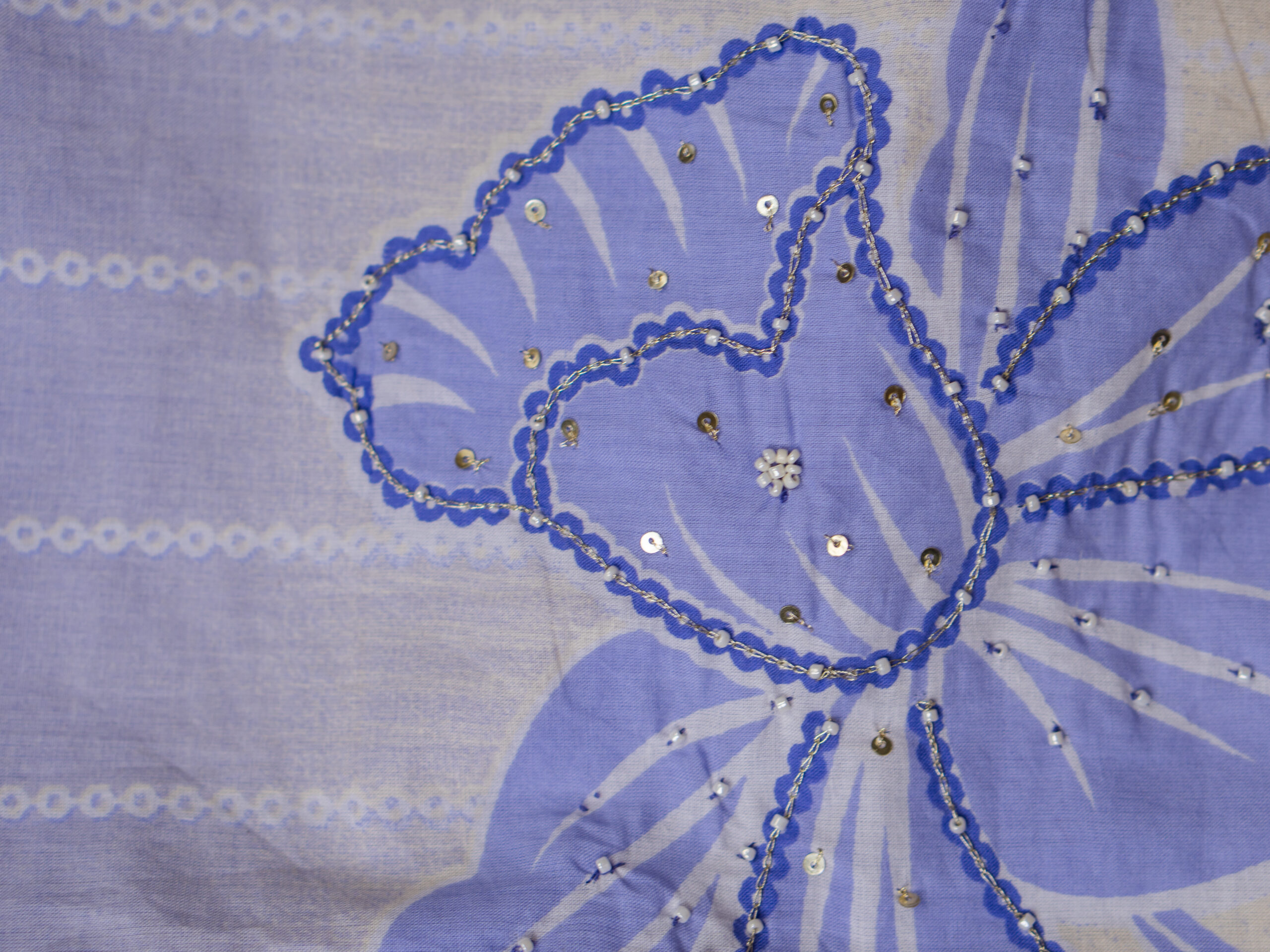Dupatta: Blue and white with floral motifs and stripes
